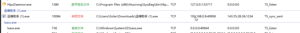 通过火绒剑查看网络连接可以看到
